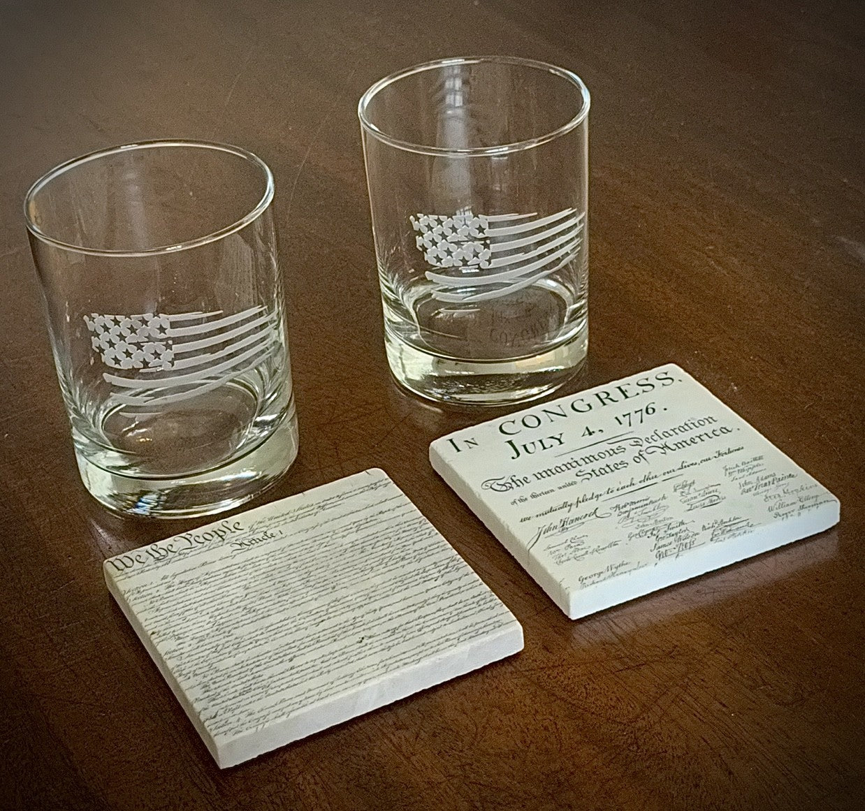 Declaration/Constitution Sand Carved Glasses
